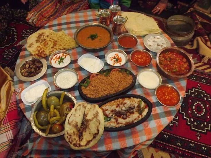 Misafirin olduğu zamanlar nezaketen ev sahibinin önce başlaması beklenir. Kalabalık ailelerde, önce büyükler veya erkekler oturup yer, daha sonra hanımlar ve çocuklar oturur yada erkekler ayrı, hanımlar ve çocuklar ayrı yer yerler.